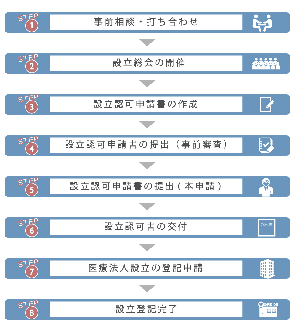 そのため、法人の設立まで2年超を要することもあります。まずは、ご相談ください。